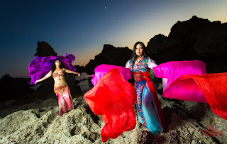 Good friends Atsuko and Satomi that I've shot before only on stage were up for trying something a little different so we went out to our secret location to try and capture some dancing and veil flying at sunset. Easier said than done though as we had to all find the location in time, get lights set up, girls ready, walking across difficult terrain, and catch the shots quickly as the light was changing very quickly.